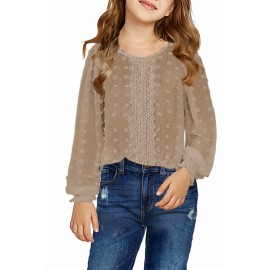 Black Split Neck Swiss Dot Little Girls' Blouse