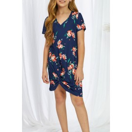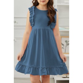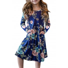 Light Blue Floral Print Sleeveless Little Girl Maxi Dress