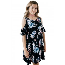 Black Floral Crisscross Shoulder Kids Dress